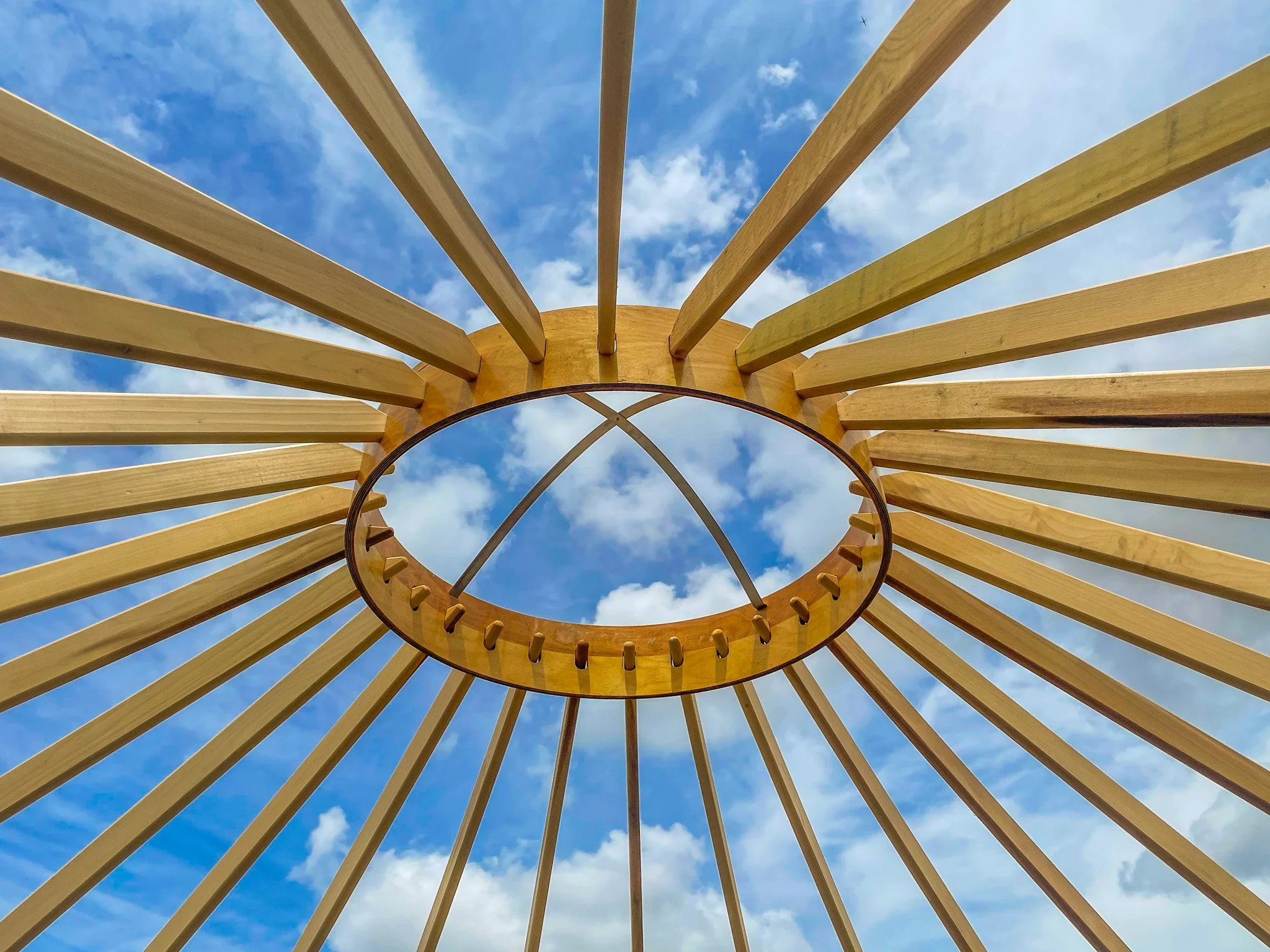 Our design starts with that history and structural logic and adapts it for modern uses. Think of it as a blank canvas: a time-tested form, reimagined for modern materials, modern aesthetics, and modern ways of gathering. Whether for outdoor adventures, immersive environments at festivals, guest housing, studios, classrooms, workshops, or creative installations, a yurt becomes what you create around it.