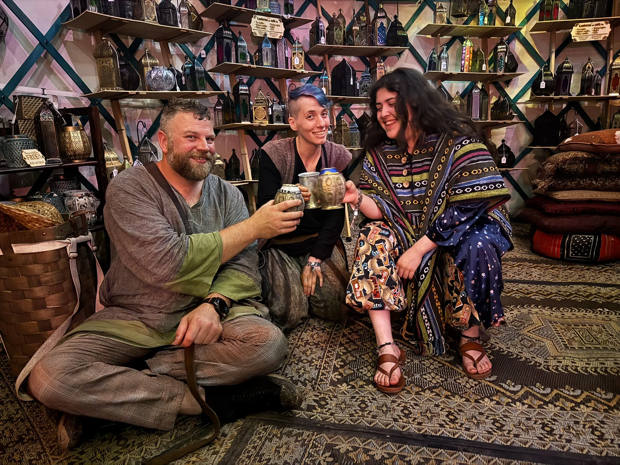 The circular shape did something to them. Strangers sat a little closer. Discussions leaned inward. Furnishings, light, and decor came together in a way that felt bigger than the individual pieces. Again and again, someone would cross the threshold, look up, and say, “Whoa.” It didn’t take long to realize our yurt wasn’t just a shelter. It became the center of camp. The meeting point. The after-hours hangout. The place where stories got told and plans got made.