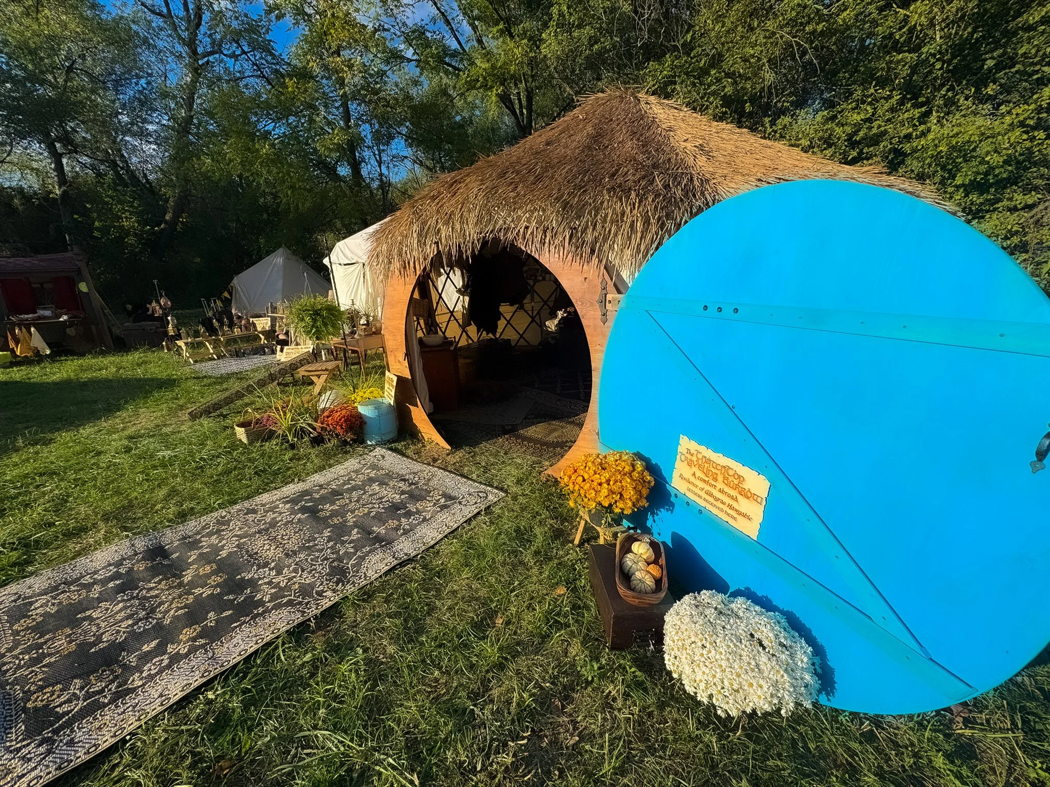 Designed and built by Tamerlane Yurts specifically for the Brandywine Festival, each Burrow is a fully realized hobbit dwelling, blending traditional yurt construction with custom woodwork, curved architecture, and rich storybook details. Combined with the Burgschneider team’s commitment to deeply immersive in-game environments and situated in a brand new in-game camping area “The Grove” these Burrows don’t look temporary, they look inhabited, personal, and real.