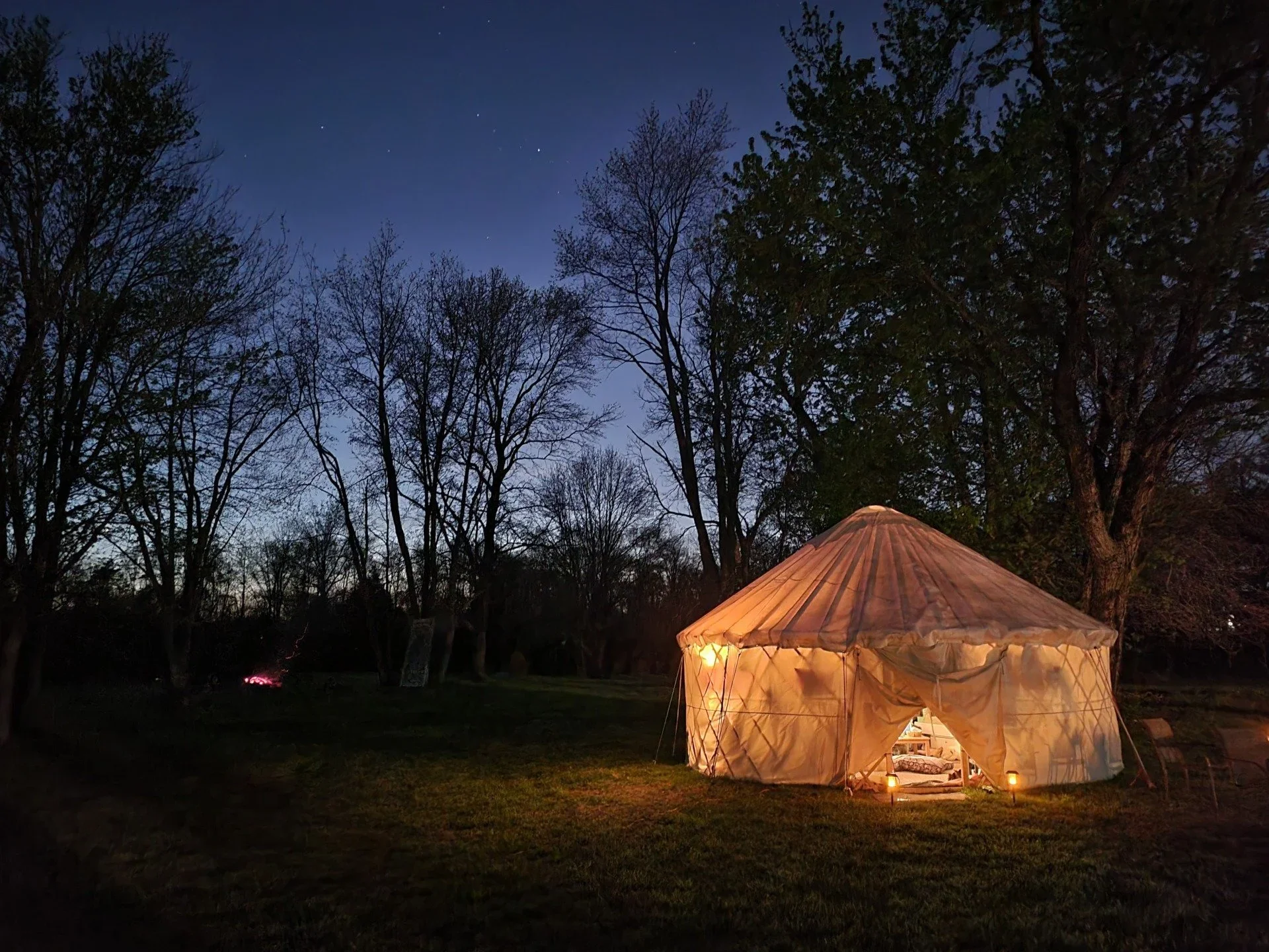 Your own furniture and décor is absolutely encouraged! We just ask that you do not paint, stain or make any permanent alterations to the yurt. -