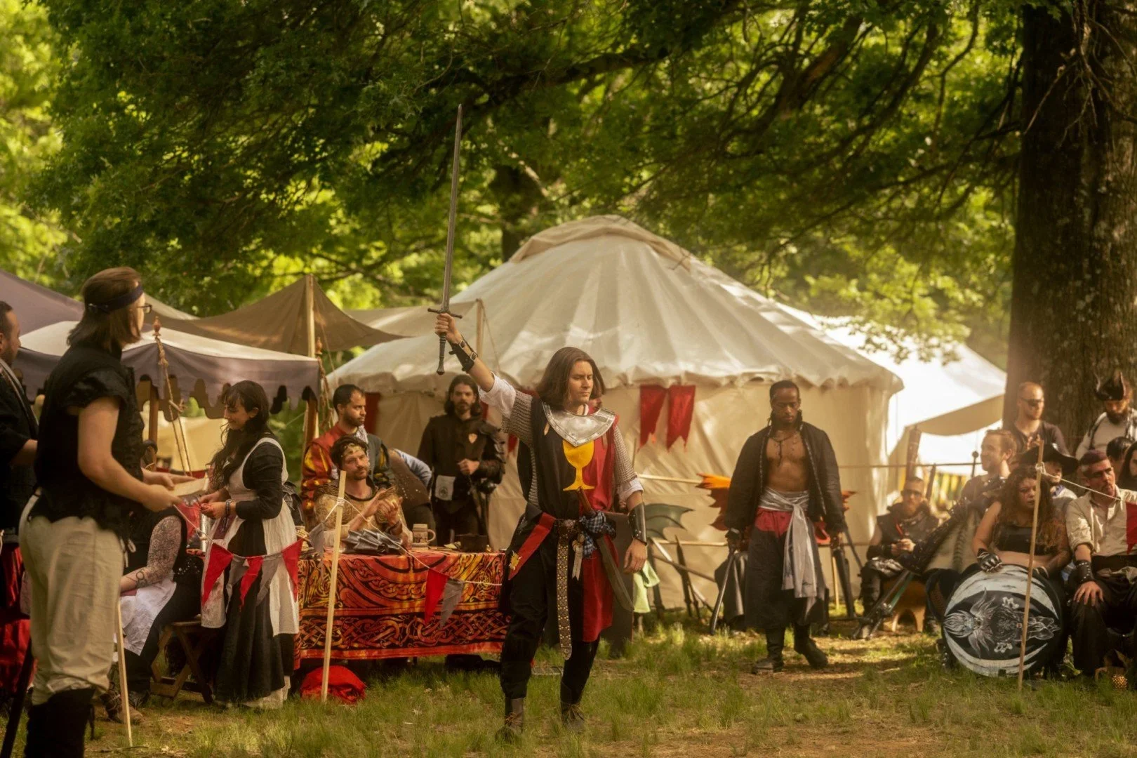 Are you ready to upgrade your DrachenFest 2026 experience? Don’t just stay in a tent, live in comfort and style with our handcrafted camping yurts. Unmatched strength, built-in hanging points for your clothes, décor and gear, its a tiny portable cabin you don’t need to duck to get into! Our Yurts are available from 12 to 16 feet in diameter perfect for individuals, couples, or families. We take care of the setup - you move in and make it your own! Learn more about the features that make our yurts an unforgettable home away from home for your LARP experience.