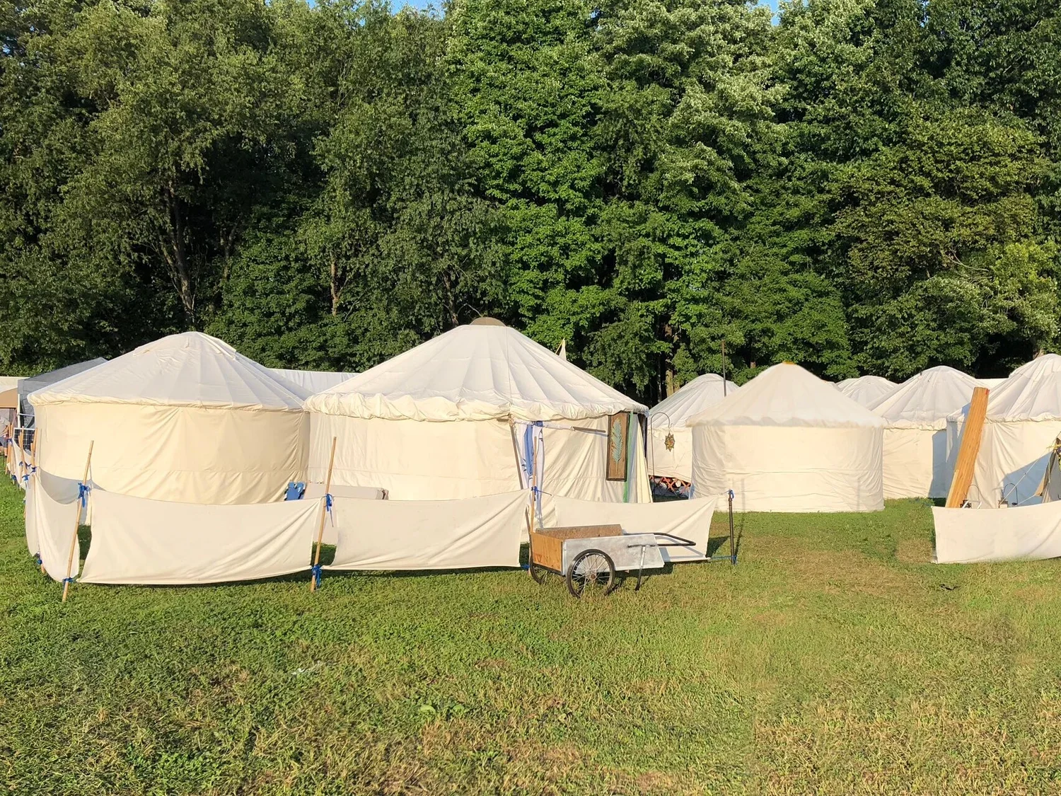 Unlike many tent structures, yurts don’t rely on extensive external poles, ropes, or guy lines. You won’t have tension lines jutting out several feet at 45° angles beyond the structure - reducing tripping hazards and making layouts cleaner and more predictable. That also means every inch of a yurt’s footprint is usable interior space, plus there’s no center pole to interrupt that space. Multiple yurts can be placed close together, integrated into tight sites, or arranged intentionally for events and installations - making them ideal for situations where space matters.