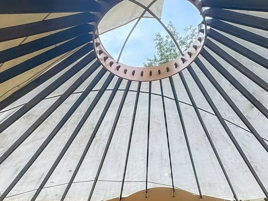 The circular shape of a yurt creates an open, expansive interior - and that same geometry is what makes it naturally wind-resistant. Instead of flat walls that catch and fight gusts, wind moves more smoothly around the curved exterior, reducing pressure on the structure. Combined with proper anchoring and tensioning, this allows the yurt to perform confidently in changing weather conditions. Like any structure, performance depends on site conditions and secure installation, but the design itself is inherently aerodynamic - a key reason yurts have endured for generations.